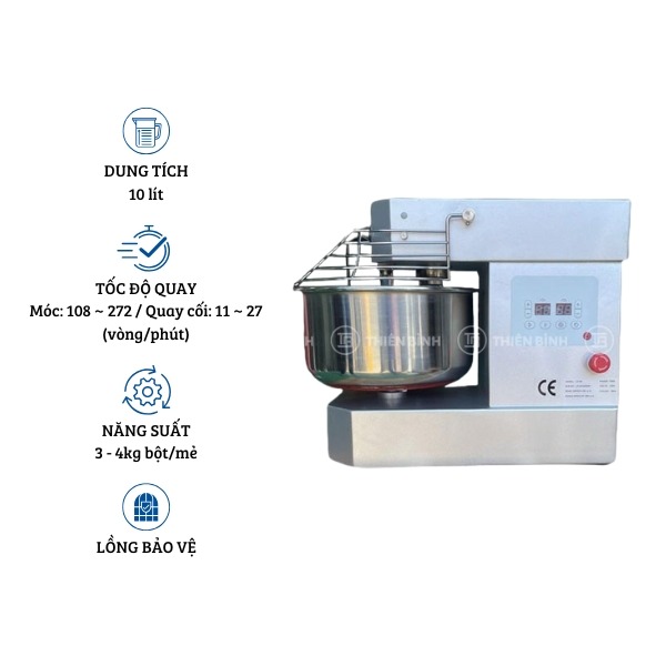 Bên trên thố trộn được trang bị lồng bảo vệ vừa giúp hạn chế bột văng bắn ra bên ngoài khi đánh trộn ở tốc độ mạnh vừa đảm bảo an toàn cho người sử dụng.
