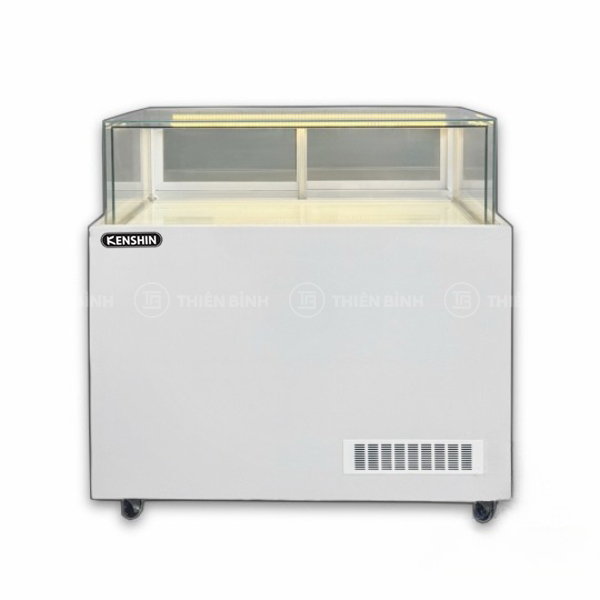 - Tủ bánh kem 1 tầng 1m2 Kenshin KS-300-4L.Z1 sở hữu thiết hiện đại với kiểu dáng hình hộp chữ nhật chắc chắn, kích thước 1200*650*1200mm, phù hợp sử dụng trong những không gian có diện tích rộng rãi, quy mô vừa và lớn, không chỉ đem lại sự chuyên nghiệp mà còn giúp gia tăng hiệu quả tính thẩm mỹ.