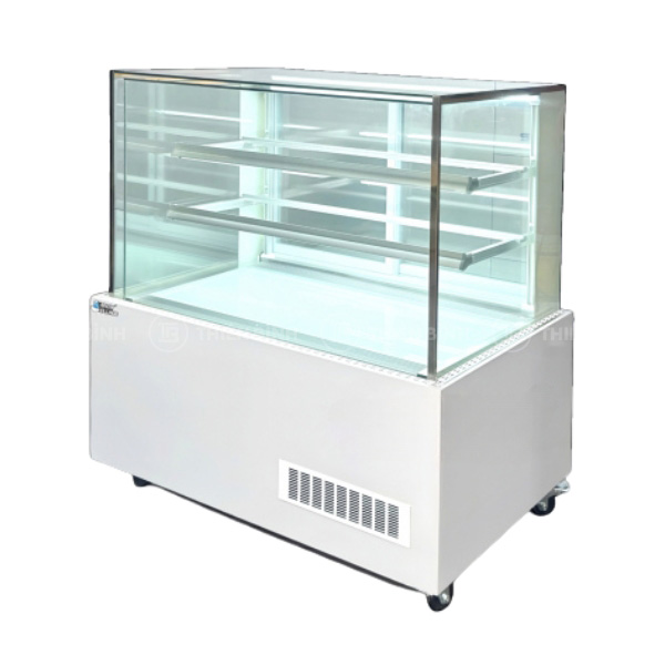 - Tủ bánh kem 3 tầng 1m2 kính vuông Snow Village DG-1200 sở hữu thiết kế hiện đại với mặt kính vuông góc cạnh sắc nét, kết hợp tông màu trắng đen thời thượng tạo nên vẻ sang trọng cho không gian trưng bày, phù hợp từ tiệm bánh nhỏ đến showroom bánh cao cấp.