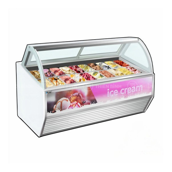 Tủ trưng bày kem 16 khay SnowVillage BL-1.6 kính cong