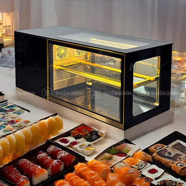 Thiết kế dạng đặt bàn thẩm mỹ cao, bắt mắt dễ dàng thu hút mọi khách hàng. Sản phẩm phù hợp trưng bày các loại sushi trong các nhà hàng ẩm thực Nhật Bản, Hàn Quốc, siêu thị, cửa hàng hay sử dụng làm tủ bánh ngọt mini trong các quán bar, tiệm cafe, quán trà sữa, tiệm bánh kem…