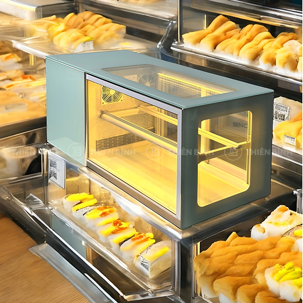 - Sắp xếp trưng bày các loại sushi, bánh ngọt khoa học, tránh nhồi nhét phủ kín sản phẩm vào tủ.